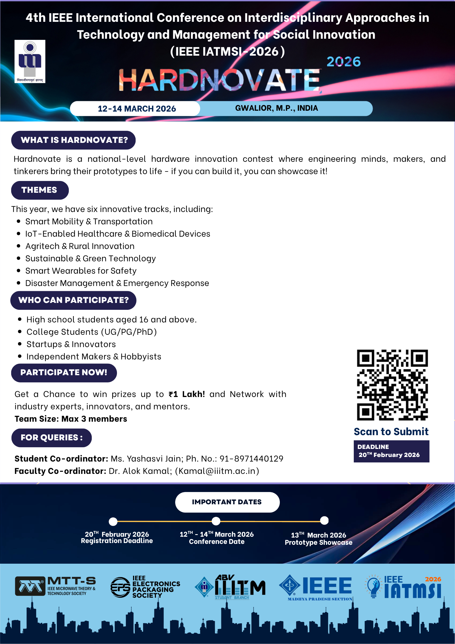 • Student Coordinator: Ms. Yashasvi Jain; Ph. No.: 91-8971440129